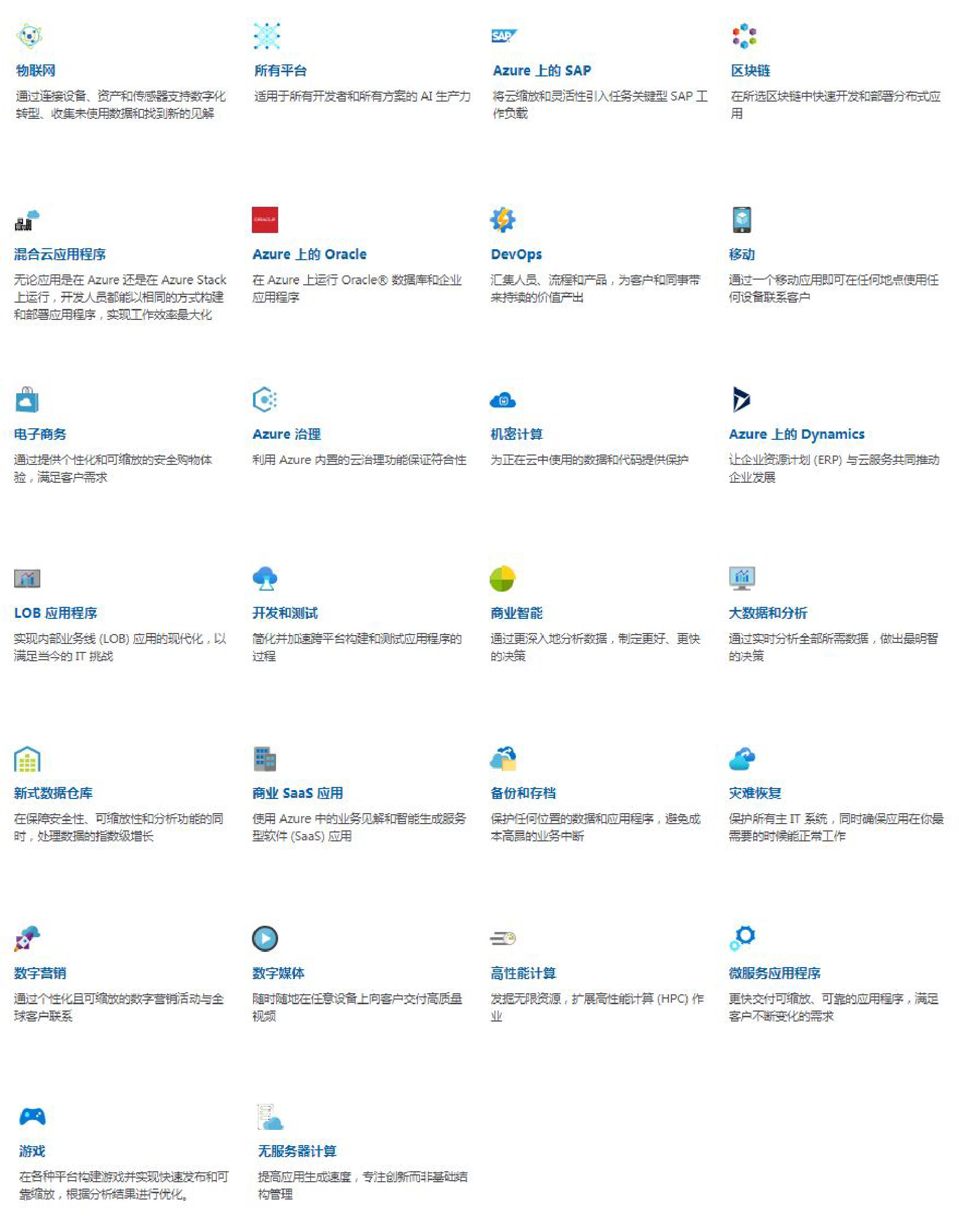 Azure 解决方案提供相关产品、服务和第三方应用程序,满足各种需求,帮助你成功应对商业挑战。